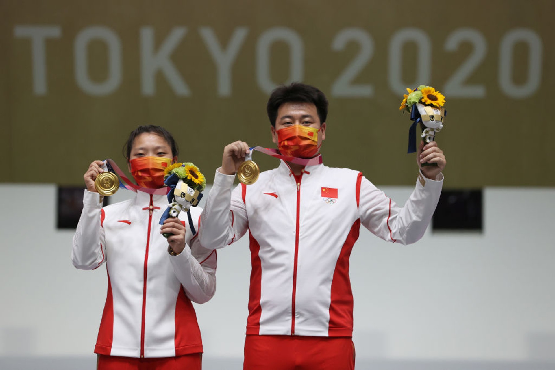 " H; n; c! g+ r5 v+ C公仔箱論壇【7月27日】混合團體10米氣手槍,龐偉及姜冉馨得到今屆中國第7金。(Getty Images)