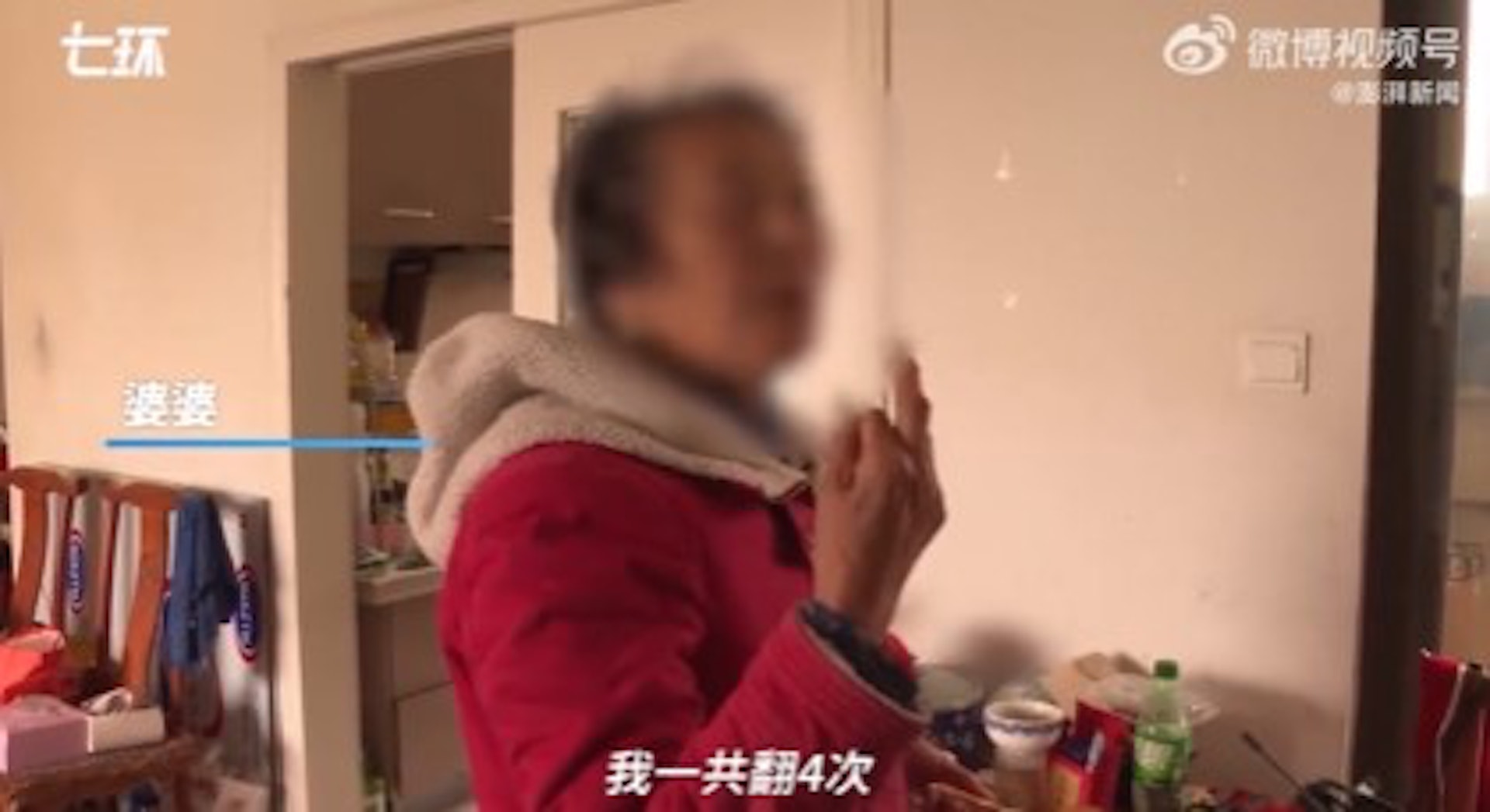 0 q+ J( ?8 K$ E$ t5 E0 S公仔箱論壇婆婆獲救後表示並非首次從14樓樓道外翻窗入屋。(「澎湃新聞」微博影片截圖)