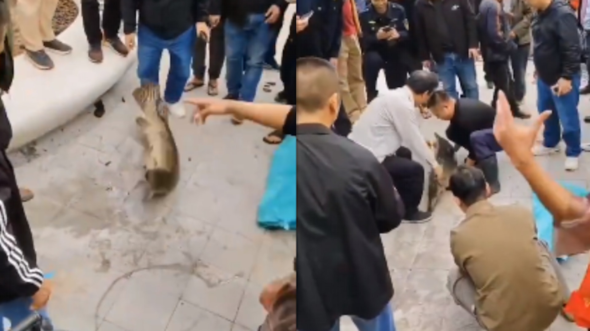 t k3 ?2 @2 }5 E廣州捕獲三條疑似違法放生鱷雀鱔。(影片截圖)