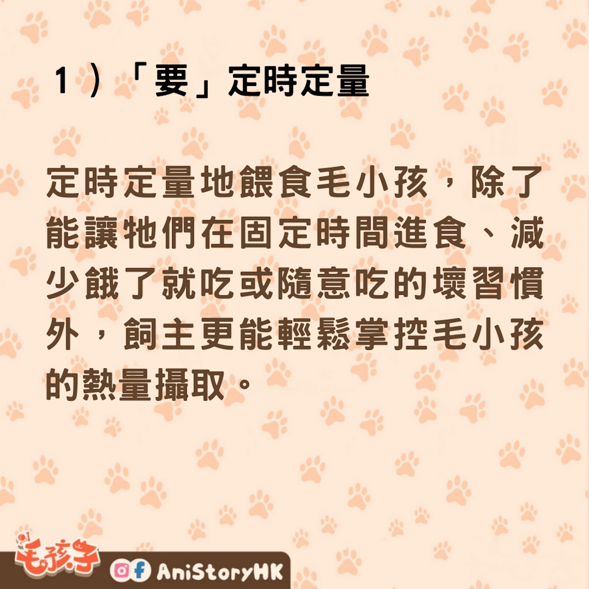 定時定量地餵食毛小孩,除了能讓牠們在固定時間進食、減少餓了就吃或隨意吃的壞習慣外,飼主更能輕鬆掌控毛小孩的熱量攝取。