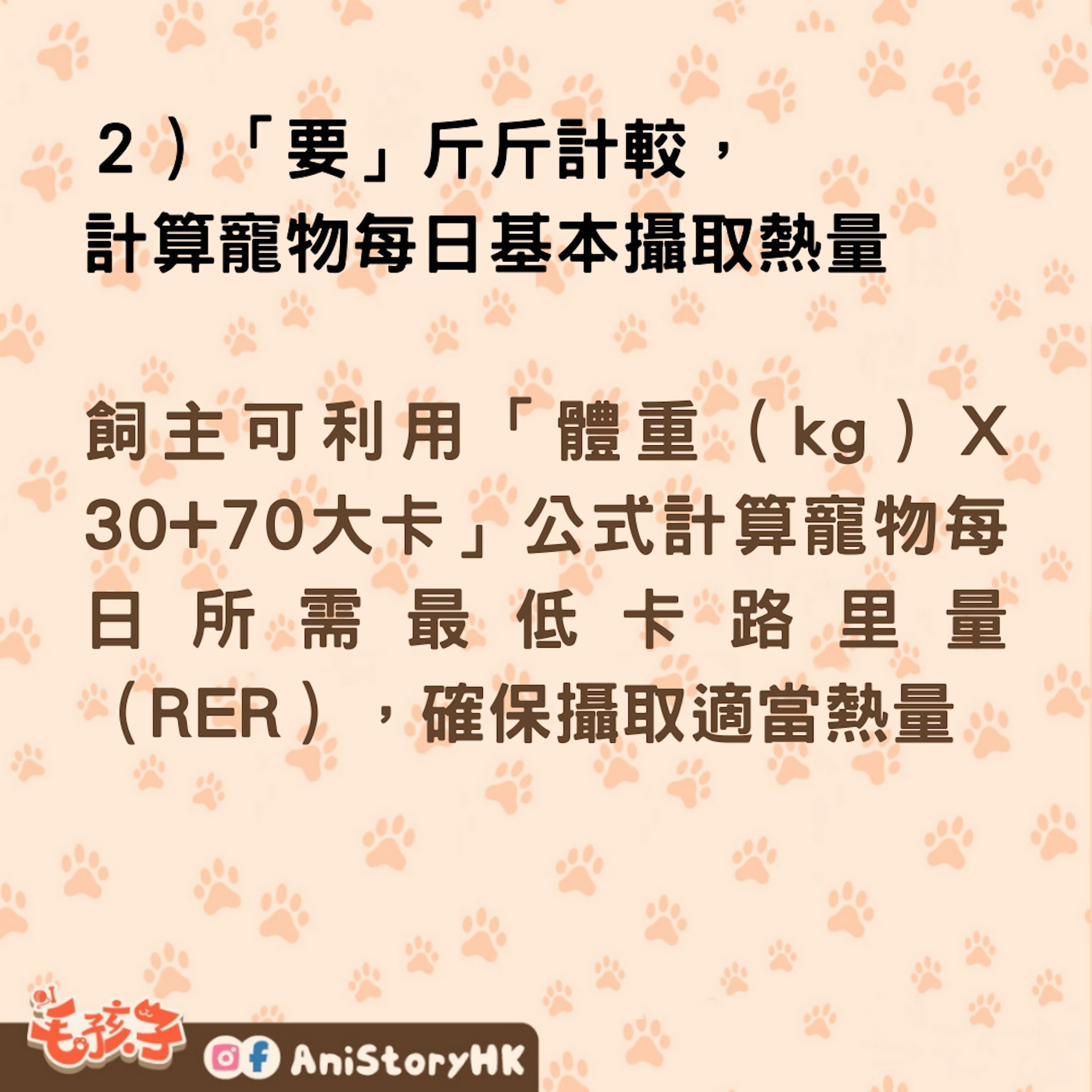2)「要」斤斤計較,計算寵物每日基本攝取熱量