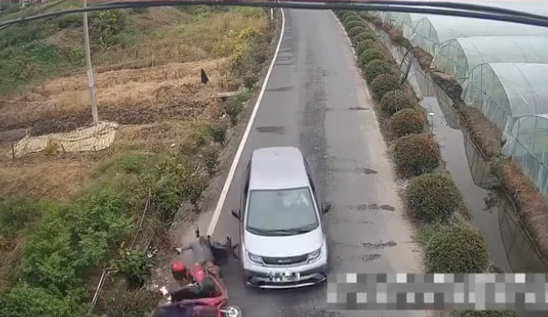 大陸浙江湖州一名男子近日開車返家時,分心低頭看了一眼手機,沒想到下秒撞上前方騎電單車的婦女。