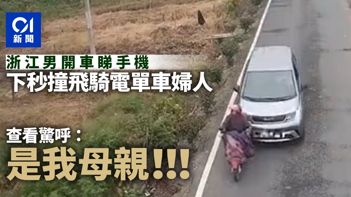 ( S& S+ q* i4 X" C4 a/ G; ]浙江湖州一名男子近日開車返家時,分心低頭看了一眼手機,沒想到下秒撞上前方騎電動車的婦女。更巧的是,他下車查看發現被撞飛的竟是自己的母親。(微博@錢江視頻)$ K' b4 |7 X% l! ^
