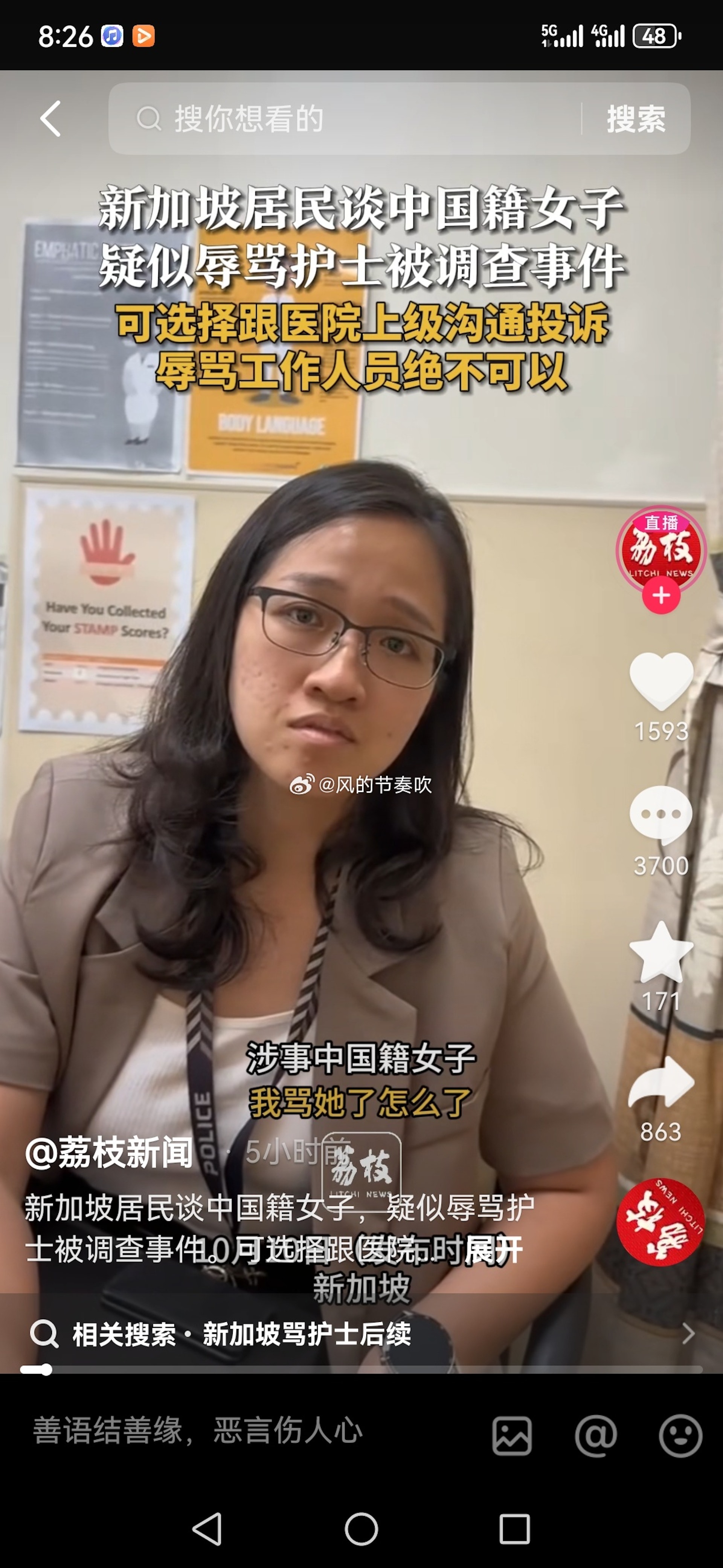 據了解,該女子在抖音有超過25萬粉絲,是小有名氣的網紅。該女子將她與調查警員爭吵的影片上傳到抖音,引發熱議。但針對事主和部分微博KOL想將事件包裝成在「新加坡被歧視」,許多網民不買單,反認為出國就應該尊重當地法律,批評該女子「在國內被慣壞了」、「在家裏橫習慣了」,更有不少網民稱羨慕新加坡的嚴格執法。tvb now,tvbnow,bttvb* ]/ T9 K- P% L, K& {