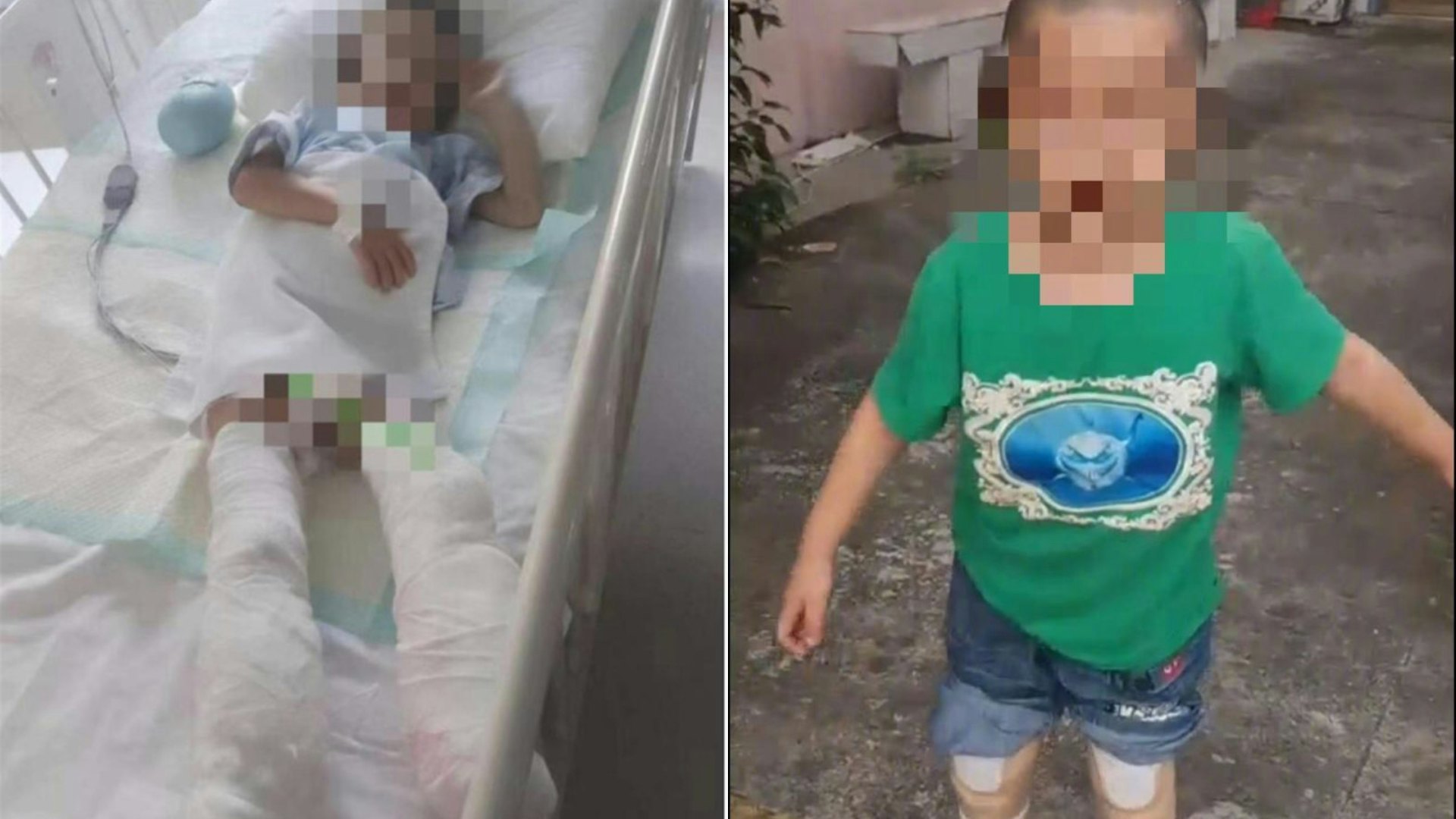 5歲男童生母虐待小腿截肢。(影片截圖)