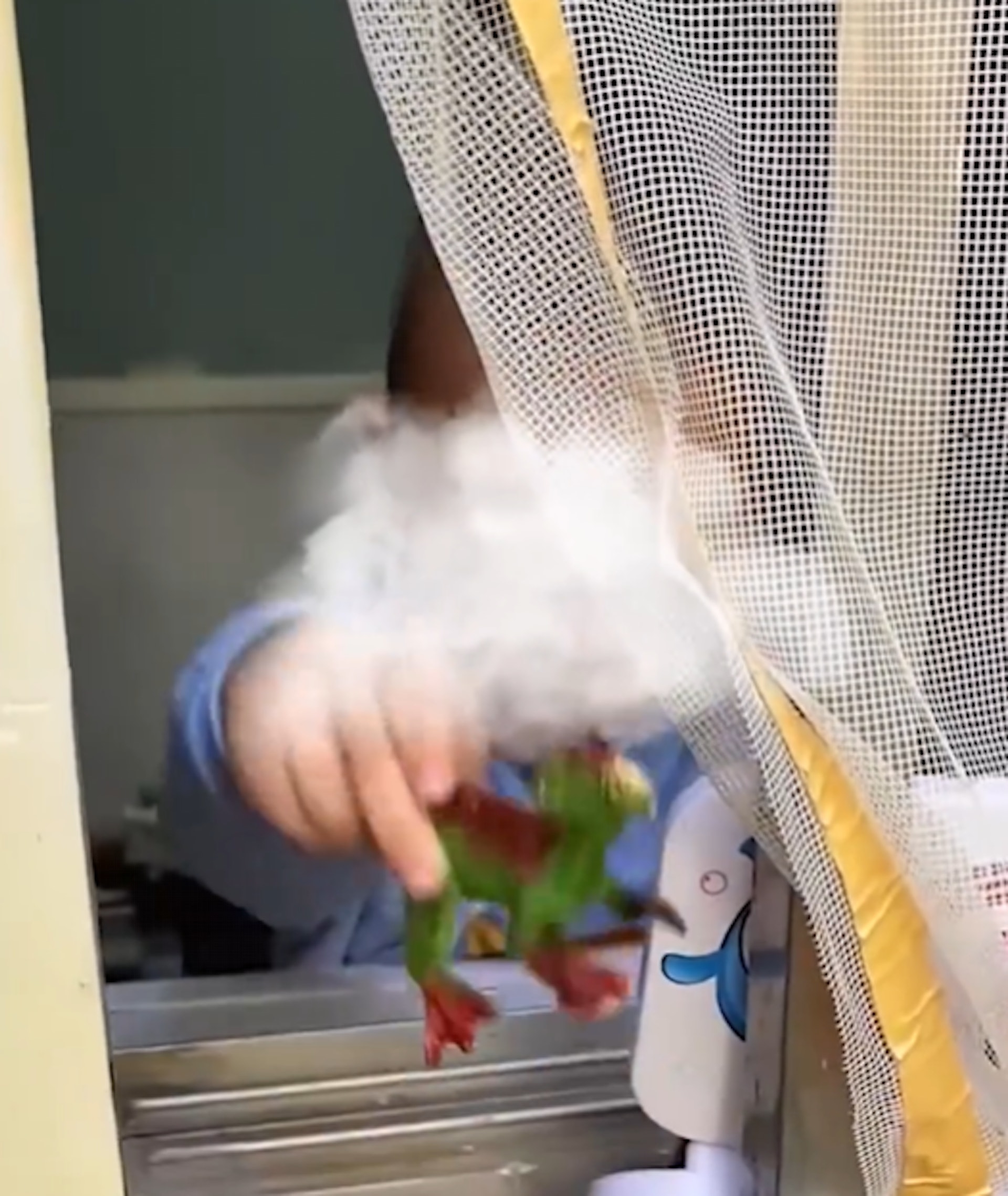 男童只有2歲拿着手機,言語所限只能作簡單回答,邊說邊玩着手中的恐龍玩具,不太懂回應。鄰居一問發現男童已2天沒有吃飯,而且車庫內蚊子很多,爸爸竟然只留下一堆零食當正餐,男童只有零食和電視相伴。鄰居見狀只能送上食物,並幫助小弟弟打電話找爸爸。 j) J9 p# v, M( a