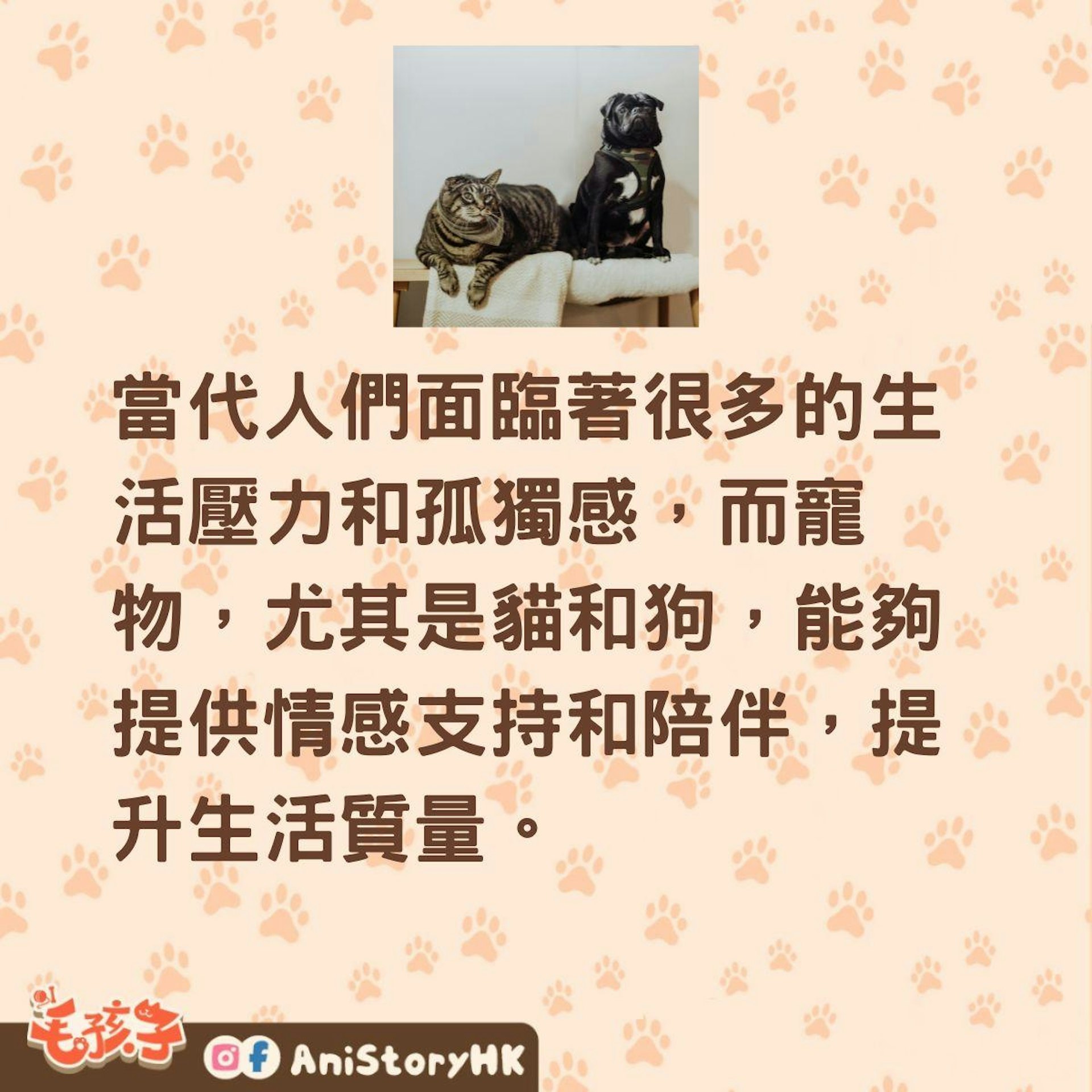 當代人們面臨著很多的生活壓力和孤獨感,而寵物,尤其是貓和狗,能夠提供情感支持和陪伴,提升生活質量。對於許多單身、老年人或丁克(DINK,Double Income, No Kids)家庭來說,寵物就像家庭成員一樣,給予他們情感上的慰藉和陪伴。