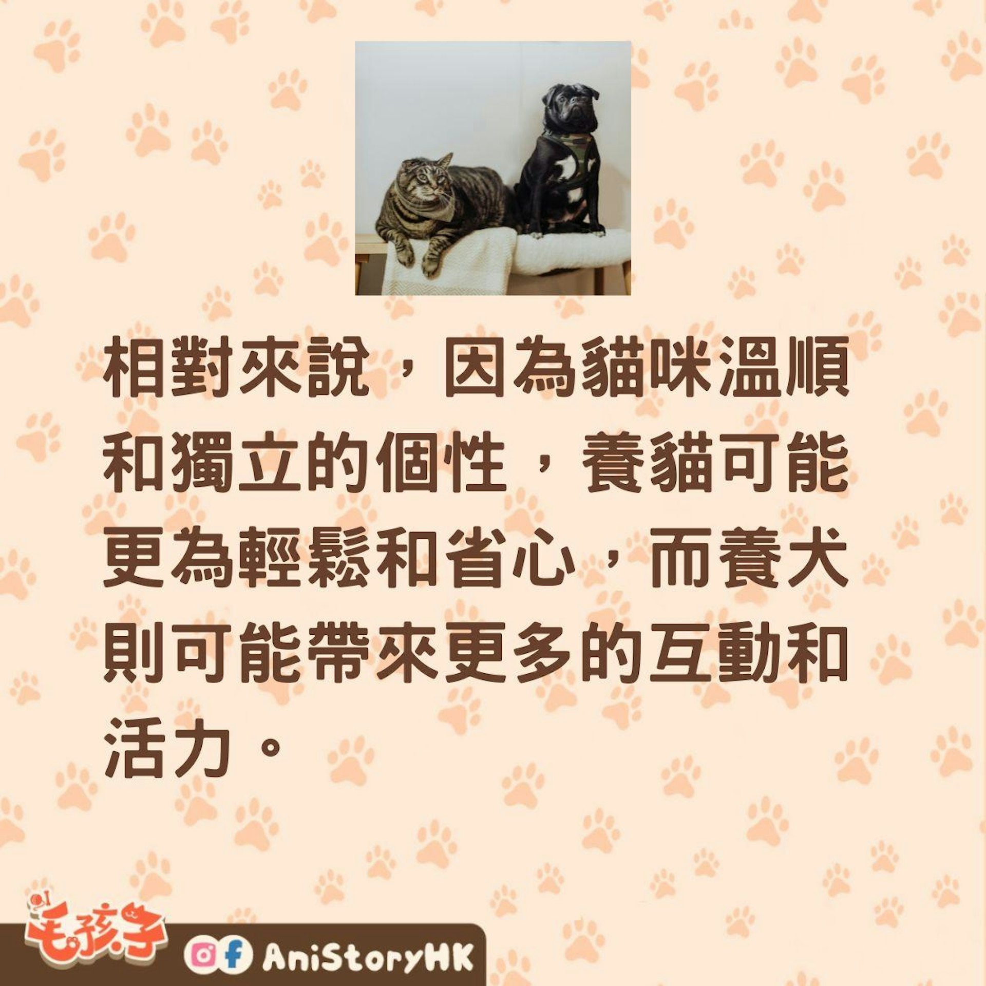 相對來說,因為貓咪溫順和獨立的個性,養貓可能更為輕鬆和省心,而養犬則可能帶來更多的互動和活力。