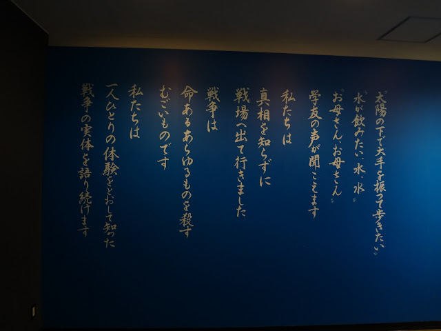 看日本網上的評論 (trip advisor),很多人造訪後都說「感覺到和平的重要」、「絕對不能讓這種草菅人命的事再發生」,甚至有人說「跟姬百合之塔一樣是一定要看一次的地方」、「一定要守住和平憲法」......