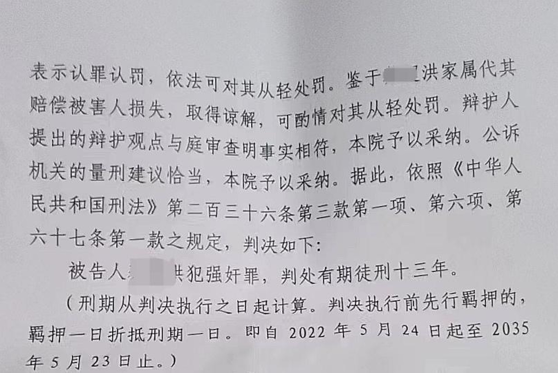 6 A. L' w* T) ?& r. S+ b- ?/ H# C/ F+ l黑車司機接到警方電話到案後,如實供述其犯罪事實,自首,且當庭表示認罪認罰,依法可對其從輕處罰。鑑於司機家屬代其賠償被害人損失3萬元,取得諒解,可酌情對其從輕處罰。最後,黑車司機以犯強姦罪被判處有期徒刑13年。16歲輟學:無法回到村裡,只能靠千元救濟金生活