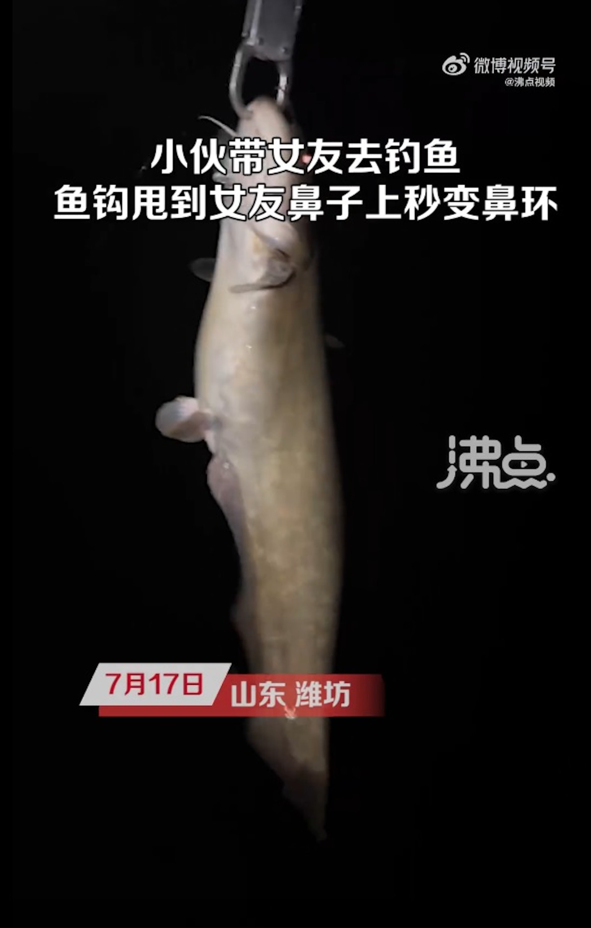 * w2 d# L8 Q; f( hTVBNOW 含有熱門話題,最新最快電視,軟體,遊戲,電影,動漫及日常生活及興趣交流等資訊。山東濰坊近日發生離奇爆笑事件,一名男子帶同女友去釣魚,甩魚杆時卻不慎將魚鈎甩到女友鼻上,插穿進皮膚。(「沸點視頻」影片截圖)