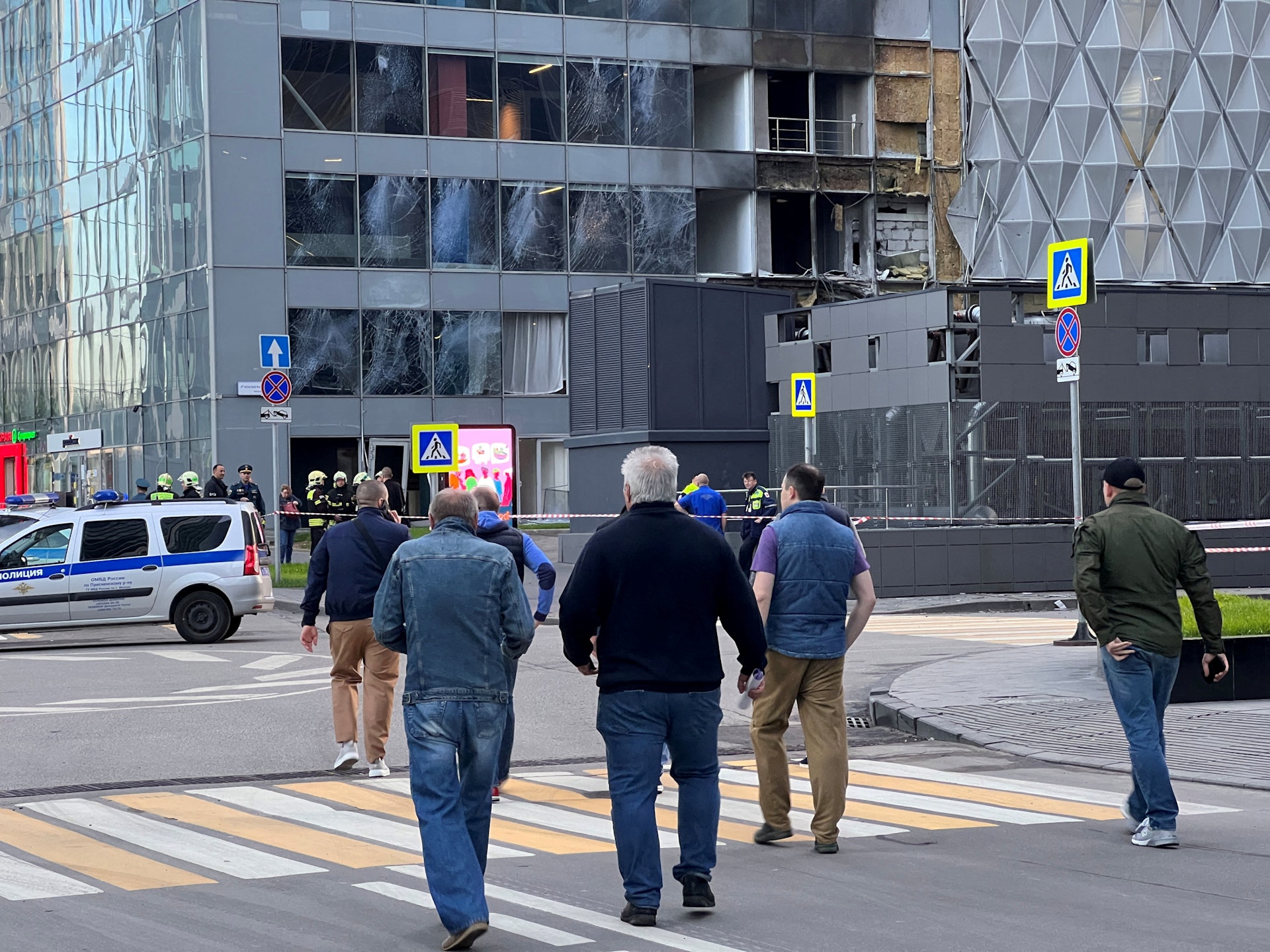 7 _6 z) b9 q3 d5 ^+ M5.39.217.77:8898烏克蘭局勢:2023年7月30日俄羅斯莫斯科發生烏克蘭無人機襲擊事件後,莫斯科市一棟辦公樓外牆受損,有途人嘗試走近觀看。(Reuters)