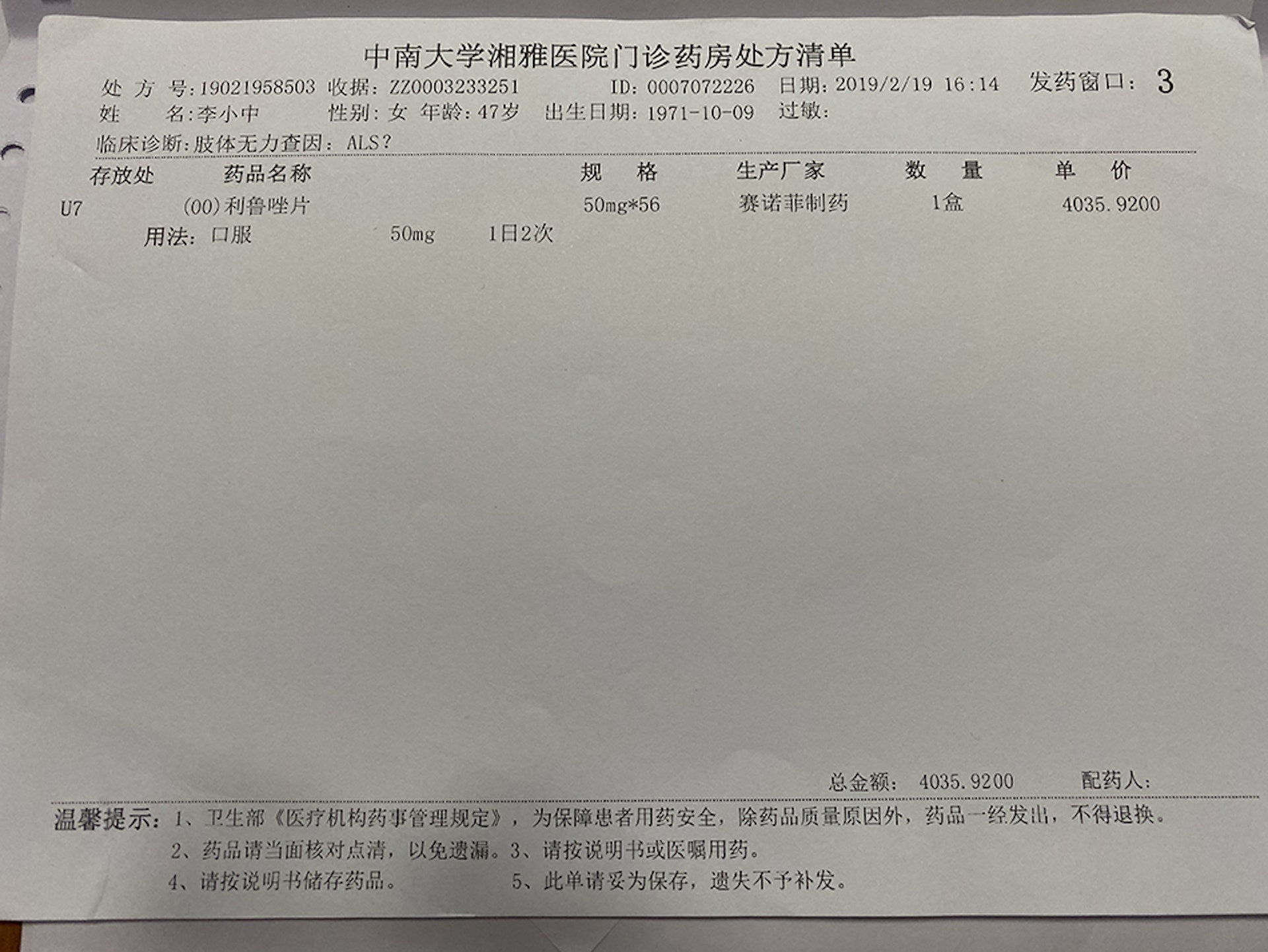 4 Z, p W* g$ g; z2 L; @( k2 {4 B5.39.217.77:8898確診後,李小中每月僅服用進口藥「力如太」就需要4000多元。(澎湃新聞)