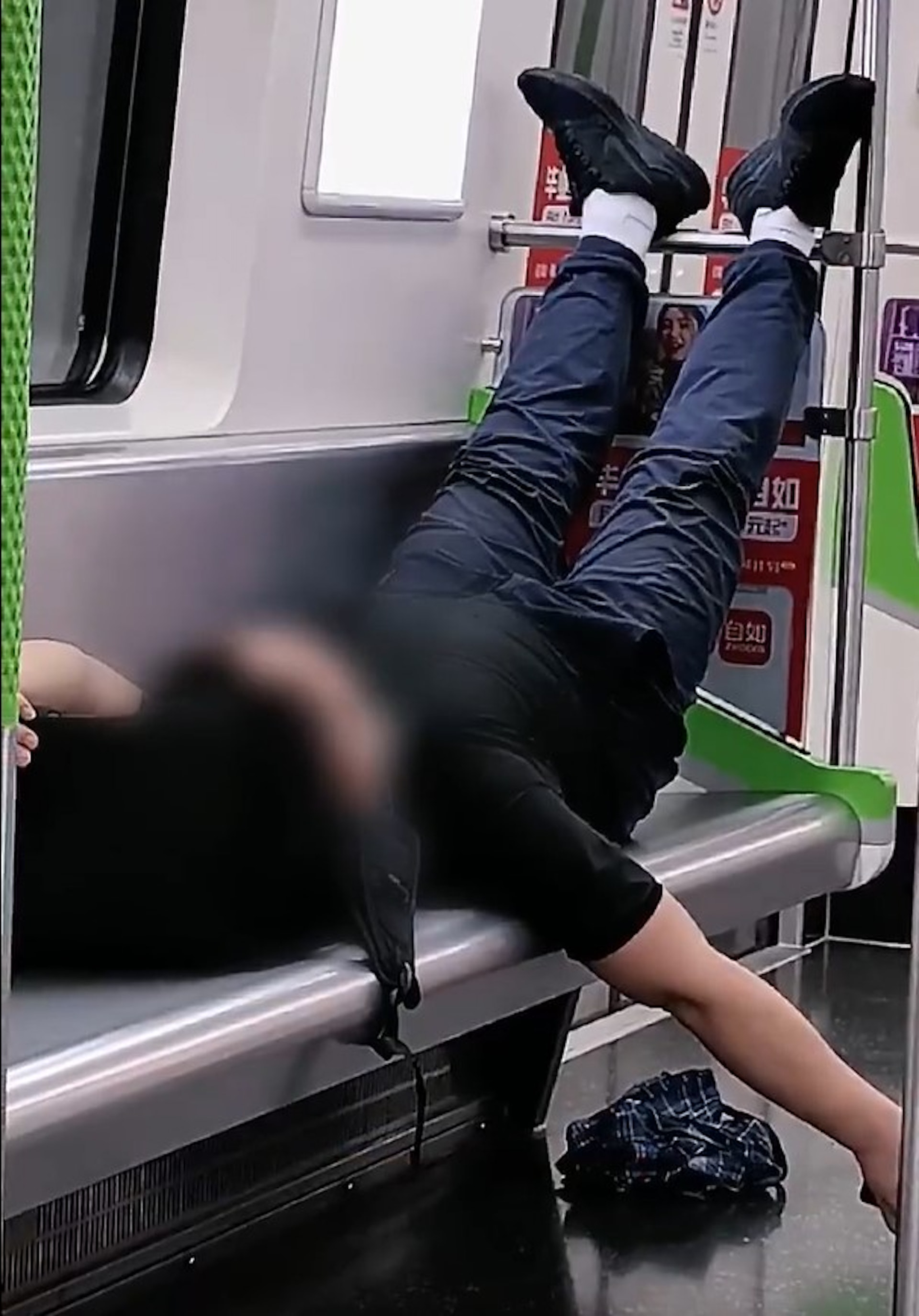 根據《搜狐千里眼》報道,5月7日湖北武漢地鐵上,有男子橫躺在座椅上酣睡。從影片可見,地鐵上亦有多個空位,1名身穿黑衣的男子平躺椅上休息,頭枕着大背囊,雙腿抬起晾到座椅與門的隔板上,手握手機幾近垂至地面。