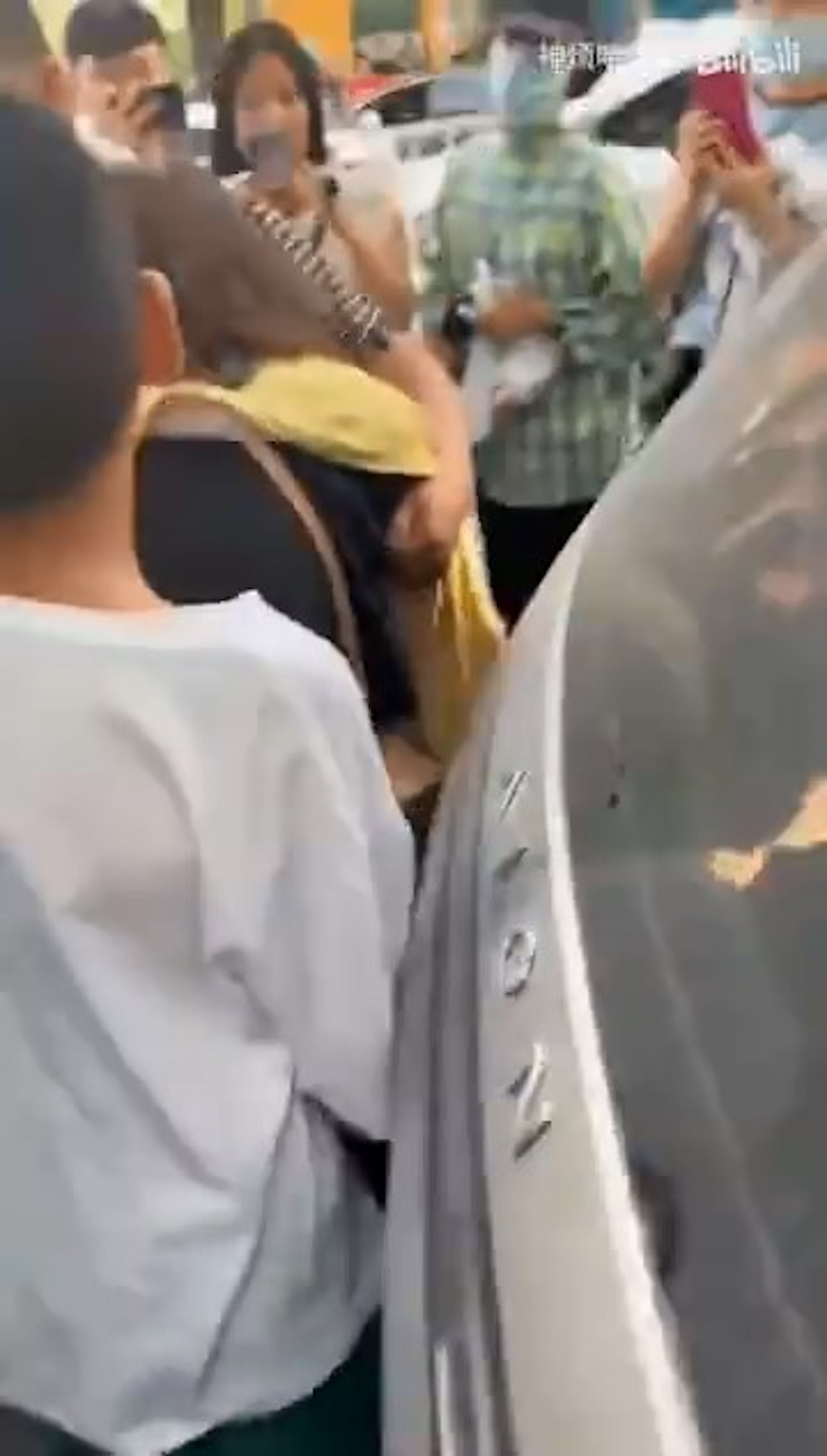 3 i9 i& k$ w9 G1 W1 X+ L# s5.39.217.77:8898停車後,群眾和人妻合力把「小三」從車裏拉出,讓其「淨身出戶」,而男人在群眾壓力及見證下,承諾把車子,房子和孩子都給妻子。(影片截圖)