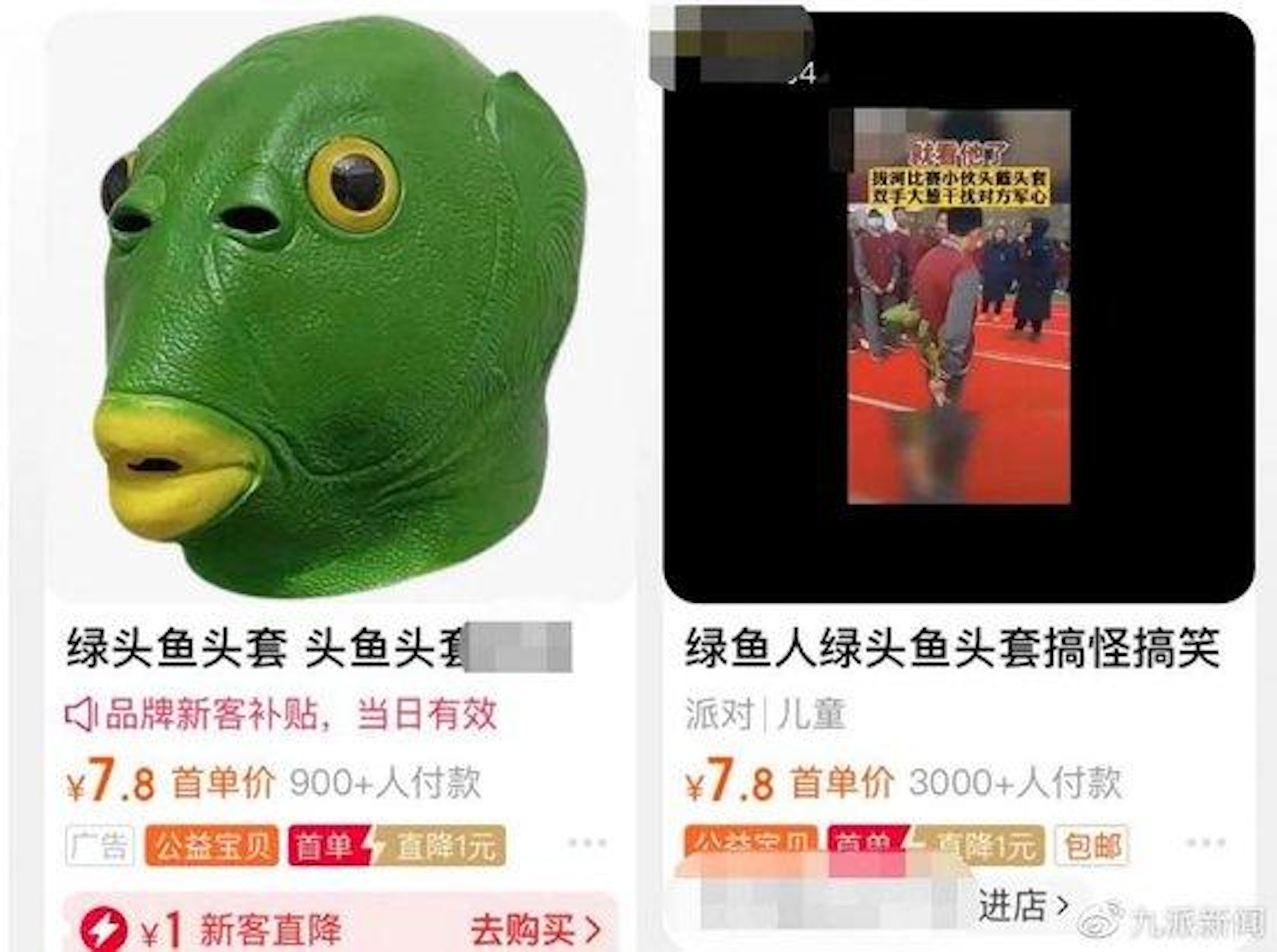 " B7 _% f. z1 \" e* A; z5 E- \tvb now,tvbnow,bttvb為免再被打,周建湘專門買來「綠頭魚頭套」戴上。(九派新聞); v$ P3 b7 N" l H) g& ^; p