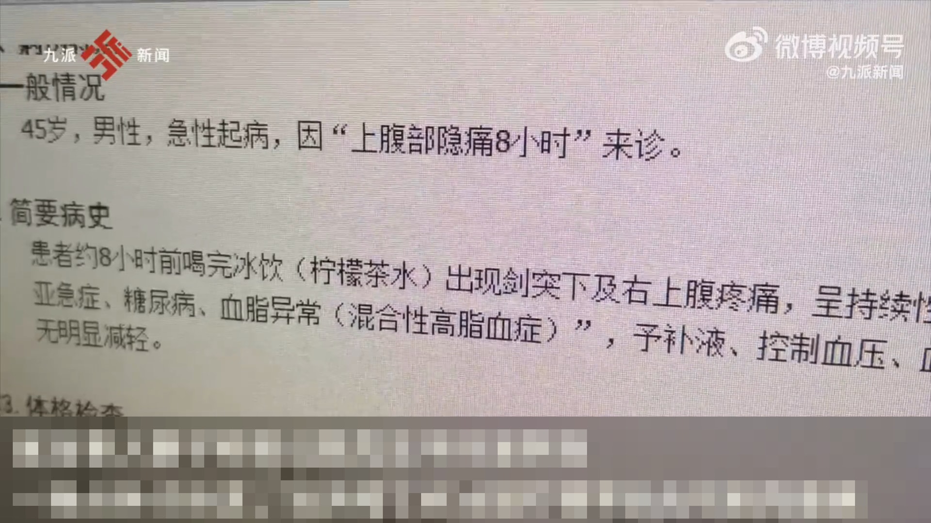 一杯凍檸茶令廣東深圳45歲男子住進深切治療部。(九派新聞)