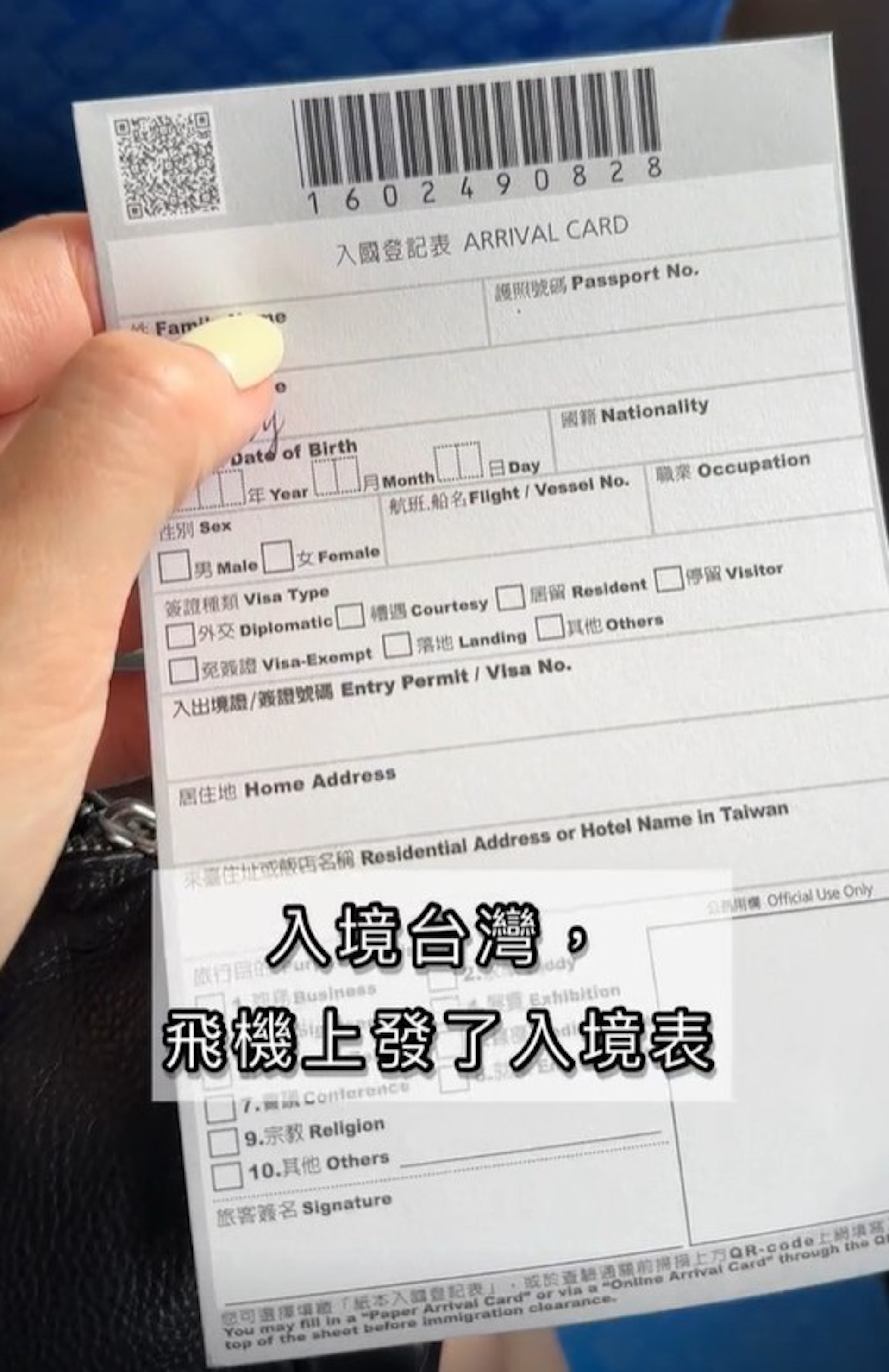 7 G$ `1 y3 K5 k$ \* Gtvb now,tvbnow,bttvb女子在機上獲空中服務員派發「入國登記表」。(macypig@抖音截圖)tvb now,tvbnow,bttvb$ y0 g$ ^, o5 _" G- C, I! C/ K