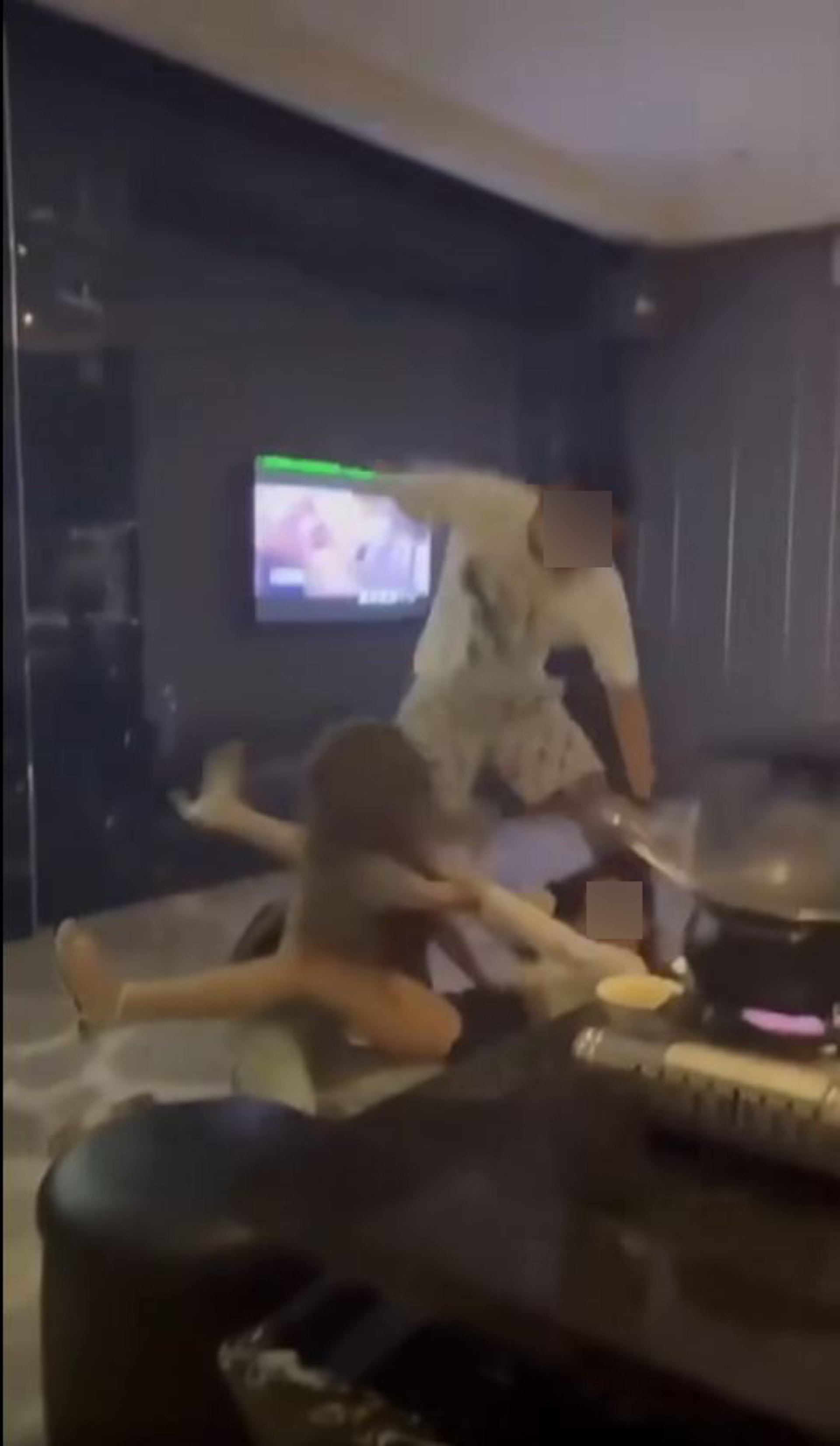 . E& g% c: M- z- Y( G) _+ R2 r5.39.217.77:8898片段中,身穿白色上衣的長黑髮女子姓孫,她被與金髮的陳姓女子發生激烈爭執,並扭打成一團,其後有白衣男子加入毆打孫女。(facebook影片截圖)