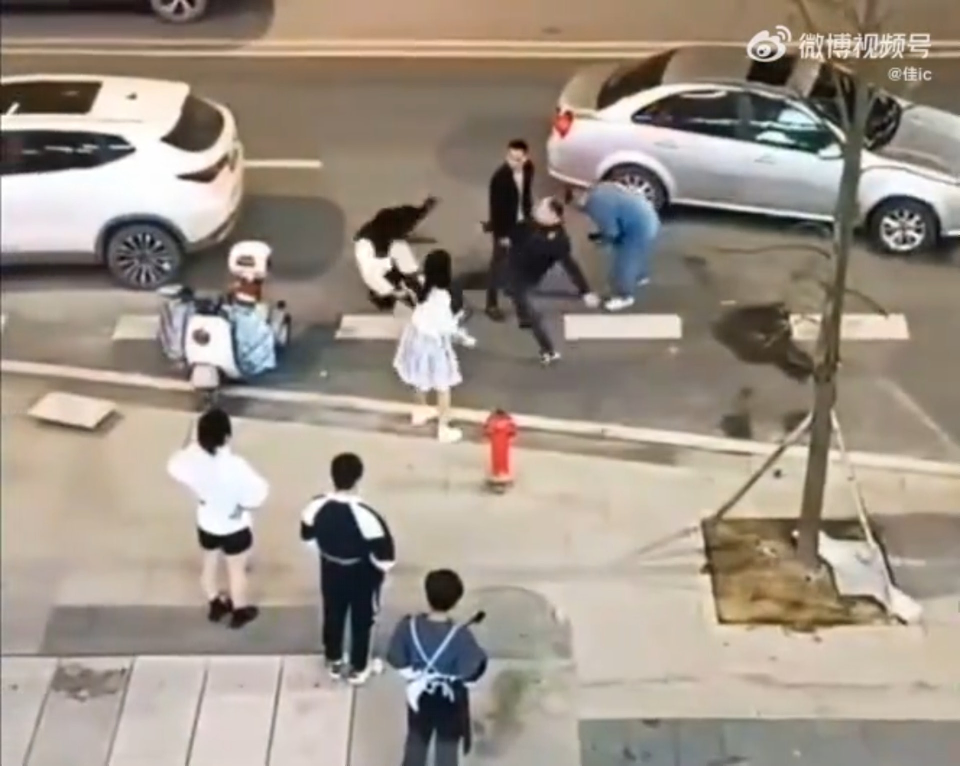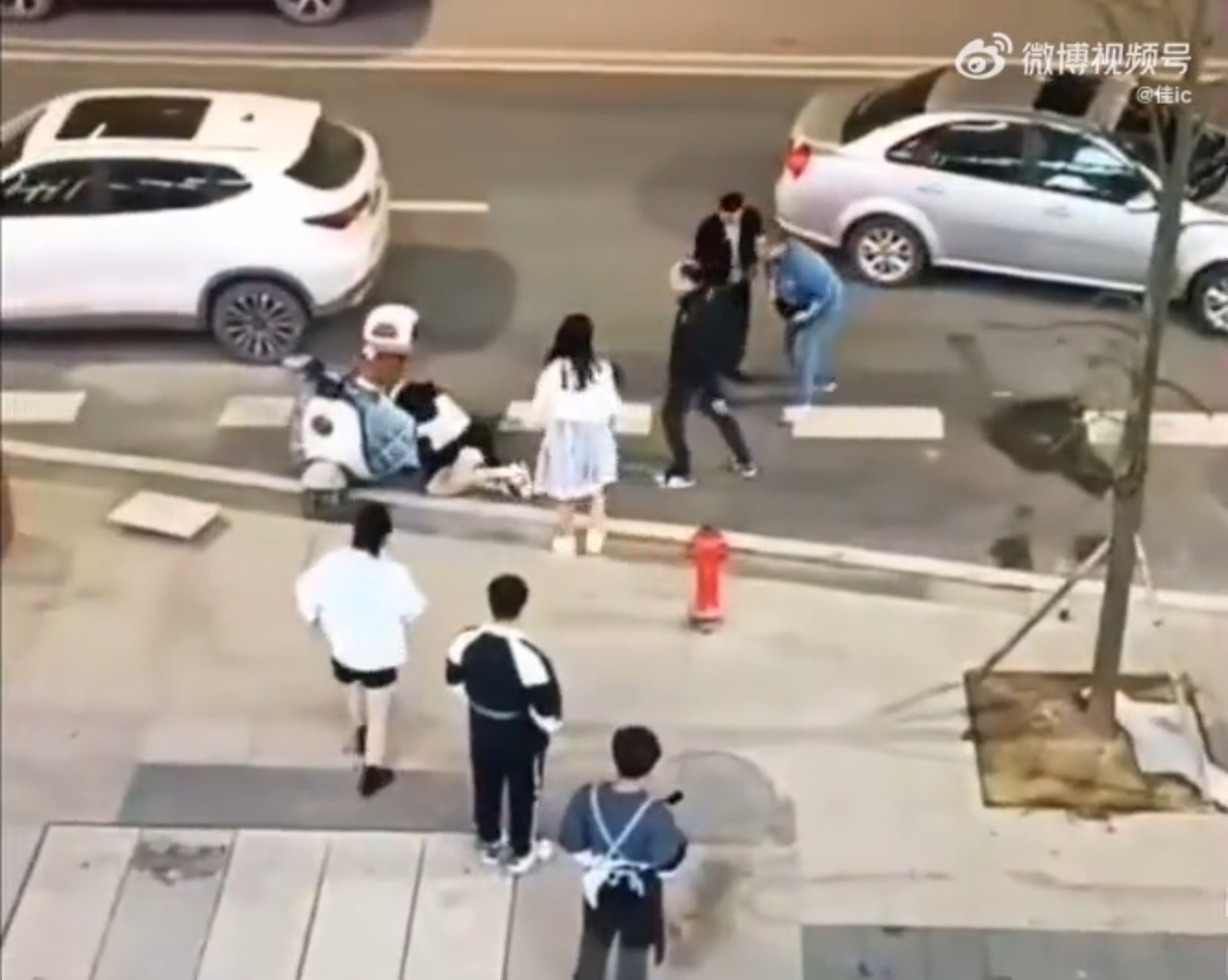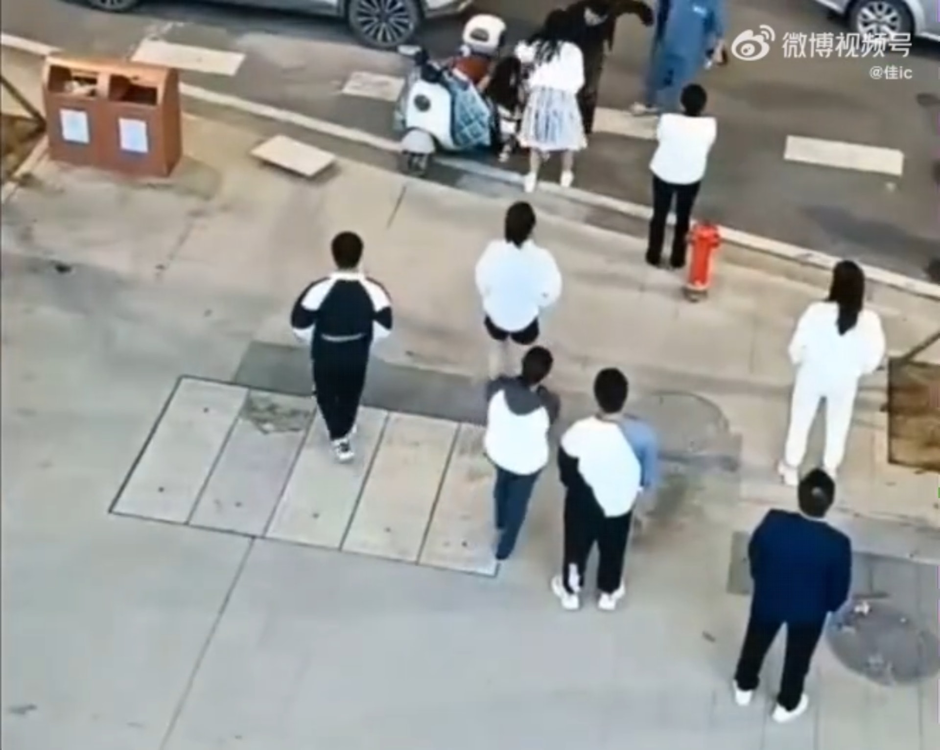湖南邵陽幾名男女當街發生衝突,有女子遭男子踢飛。(影片截圖)tvb now,tvbnow,bttvb* b4 {% h6 _+ w7 M1 o4 C
