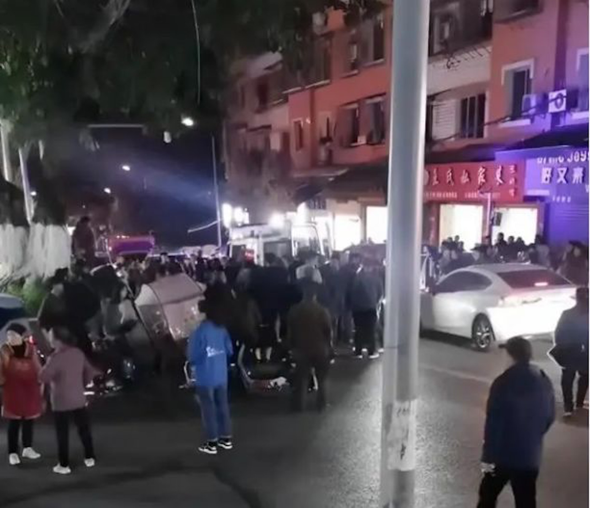 3 J! D5 G/ R! F Z3 F* B$ G公仔箱論壇命案附近聚集一群圍觀群眾。(微博)公仔箱論壇* Q. K3 C: G3 F