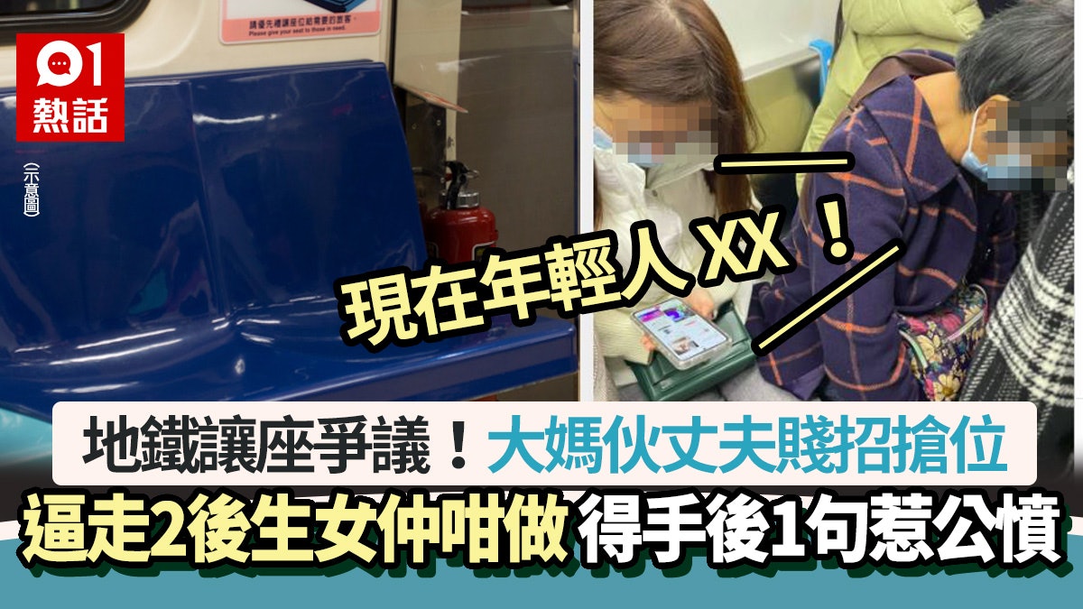 D5 }! U g+ b2 e/ f# Q* K公仔箱論壇【地鐵/讓座/搶位】搭地鐵無座位,也不用搶位吧?有內地女生於小紅書發文表示,搭地鐵時座位爆滿,但有大媽竟然「插縫坐人邊上」,把左邊後生女擠走後,再叫丈夫坐下把右邊的後生女也擠走。大媽「成功」後,更爆出一句離譜說話,引來網民公憤,「這波操作簡直看呆我」、「要我我就不讓」、「尊老,尊的是人,不是年齡」。