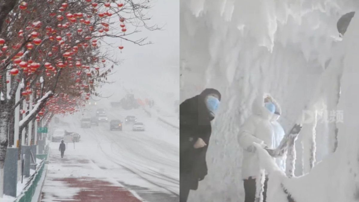 黑龍江佳木斯一住宅大樓近日就因一樓大門沒關好,經過一夜,整個一、二樓走道和樓梯就成為宛如鐘乳石洞的冰雪世界