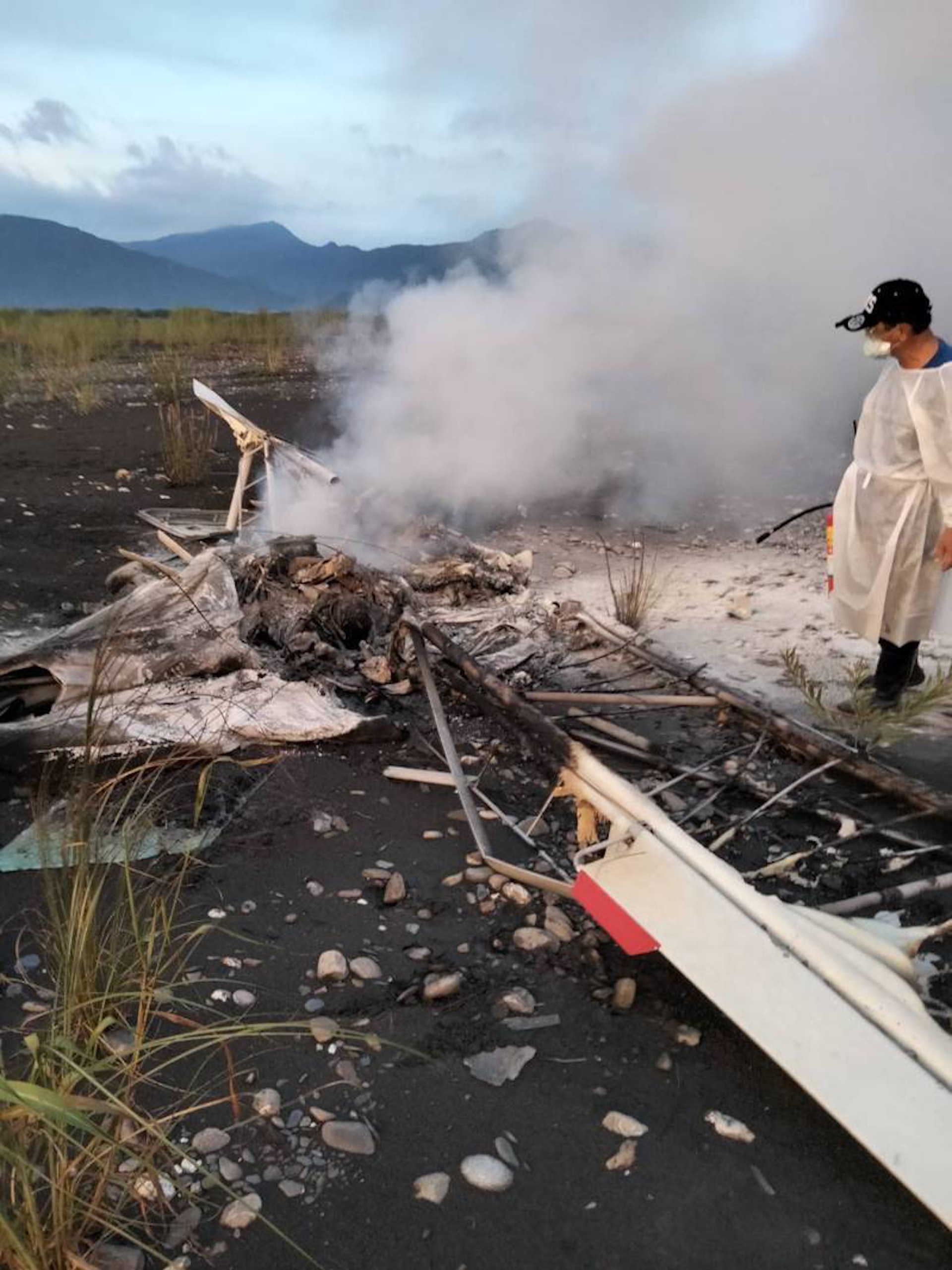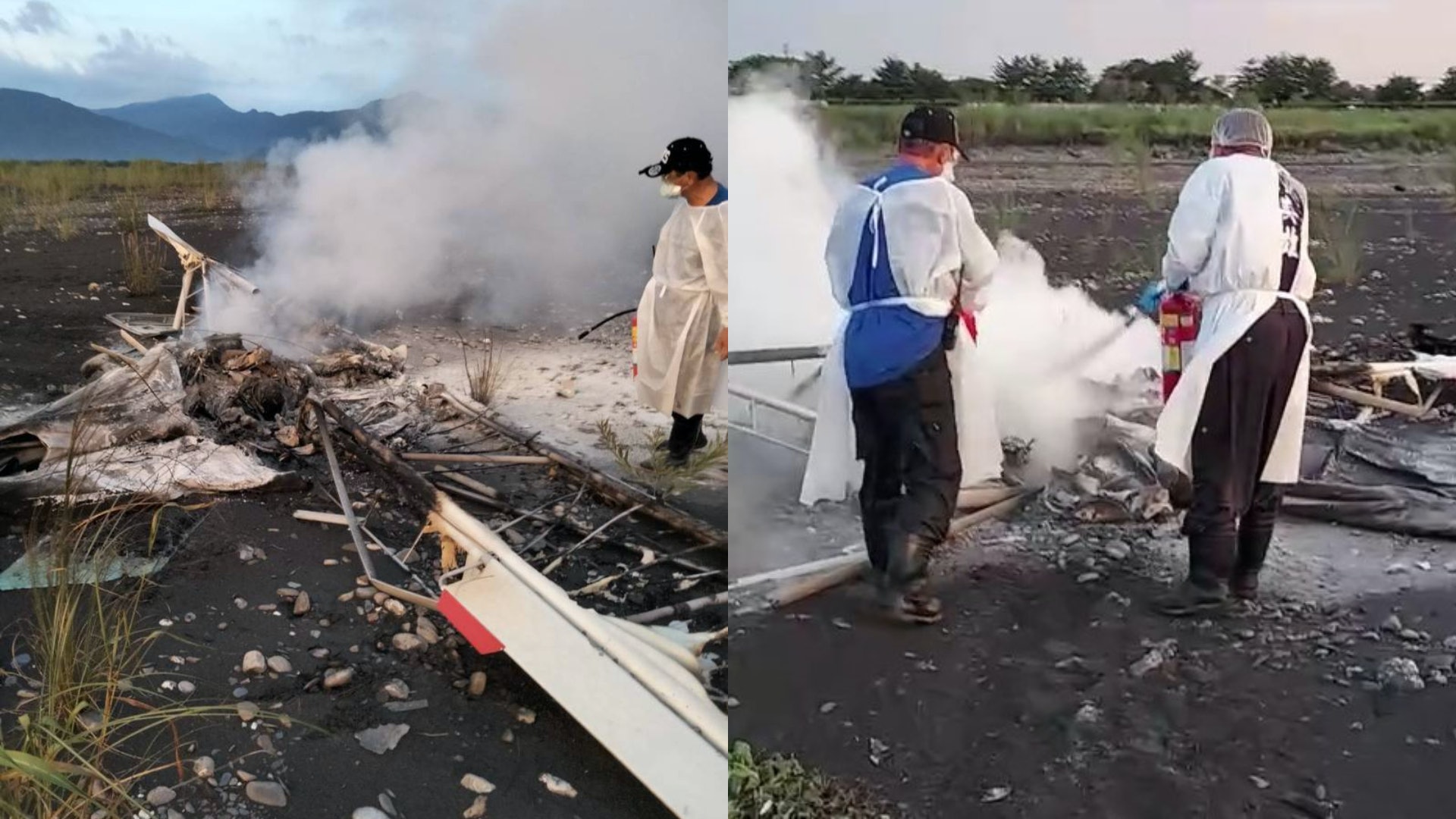 綜合台灣中央社、聯合報、民視報道,屏縣消防局表示,下午5點48分接報輕航機事故,立即派遣特搜大隊等12車22人趕往。事故現場在隘寮溪河床,救援不易,警消涉溪才抵墜機現場,發現輕航機仍不斷竄出火苗,撲滅火勢後發現二具焦屍,因已明顯死亡,未送醫。