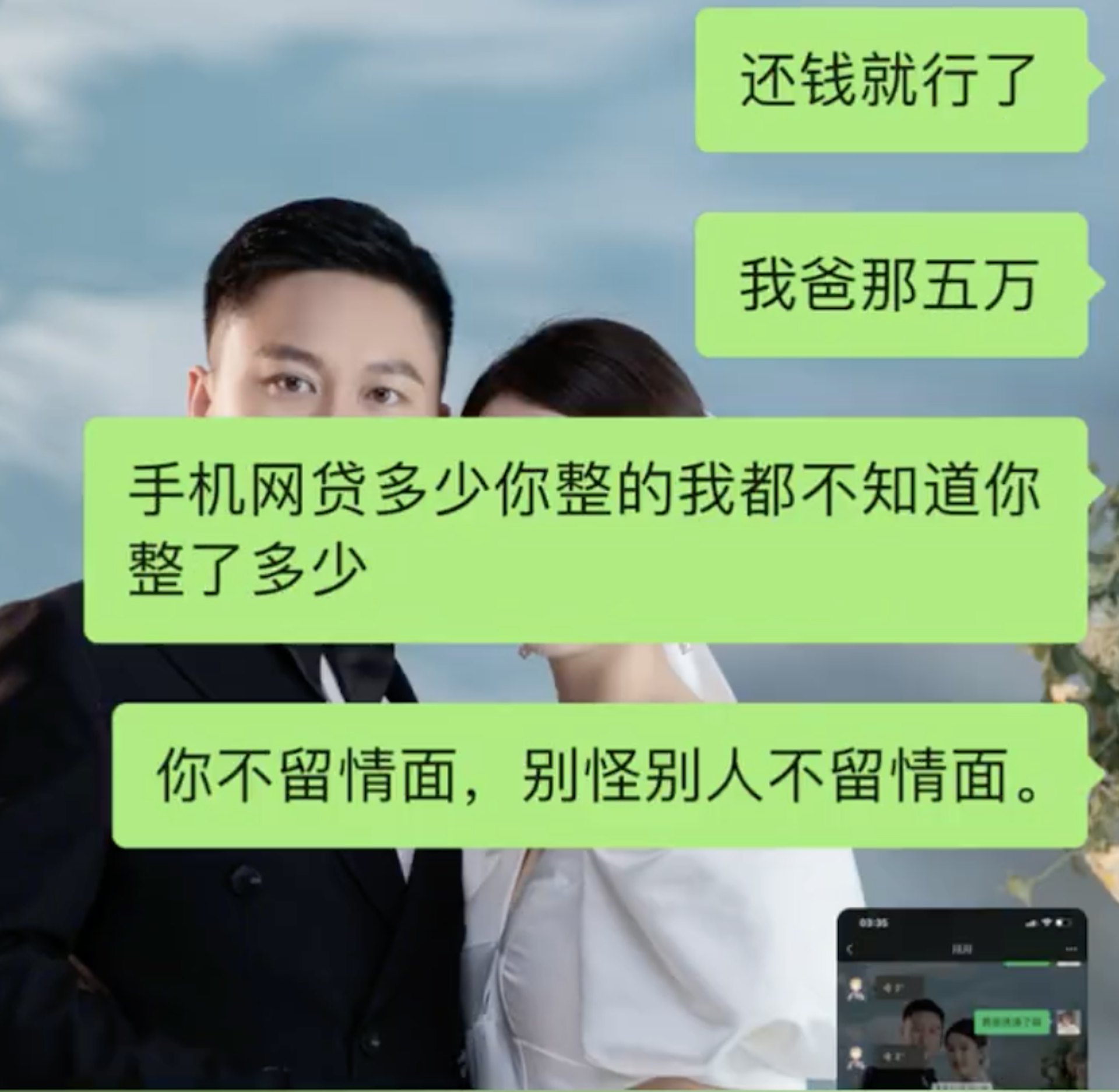 後來,李尚軒發現丈夫並非富豪,對方時常藉故向她索取金錢,自己曾以個人名義為他貸款300萬元(人民幣,約326萬港元),然而對方給自己的彩禮卻是一張空銀行卡。在懷孕後期,她甚至因拒絕繼續借貸而遭丈夫驅逐和虐待。生育後,丈夫更是一度失聯,讓她獨自承擔起債務與撫養責任,「在他眼中這個孩子根本不是人」。7 O! h3 _; w2 o0 K