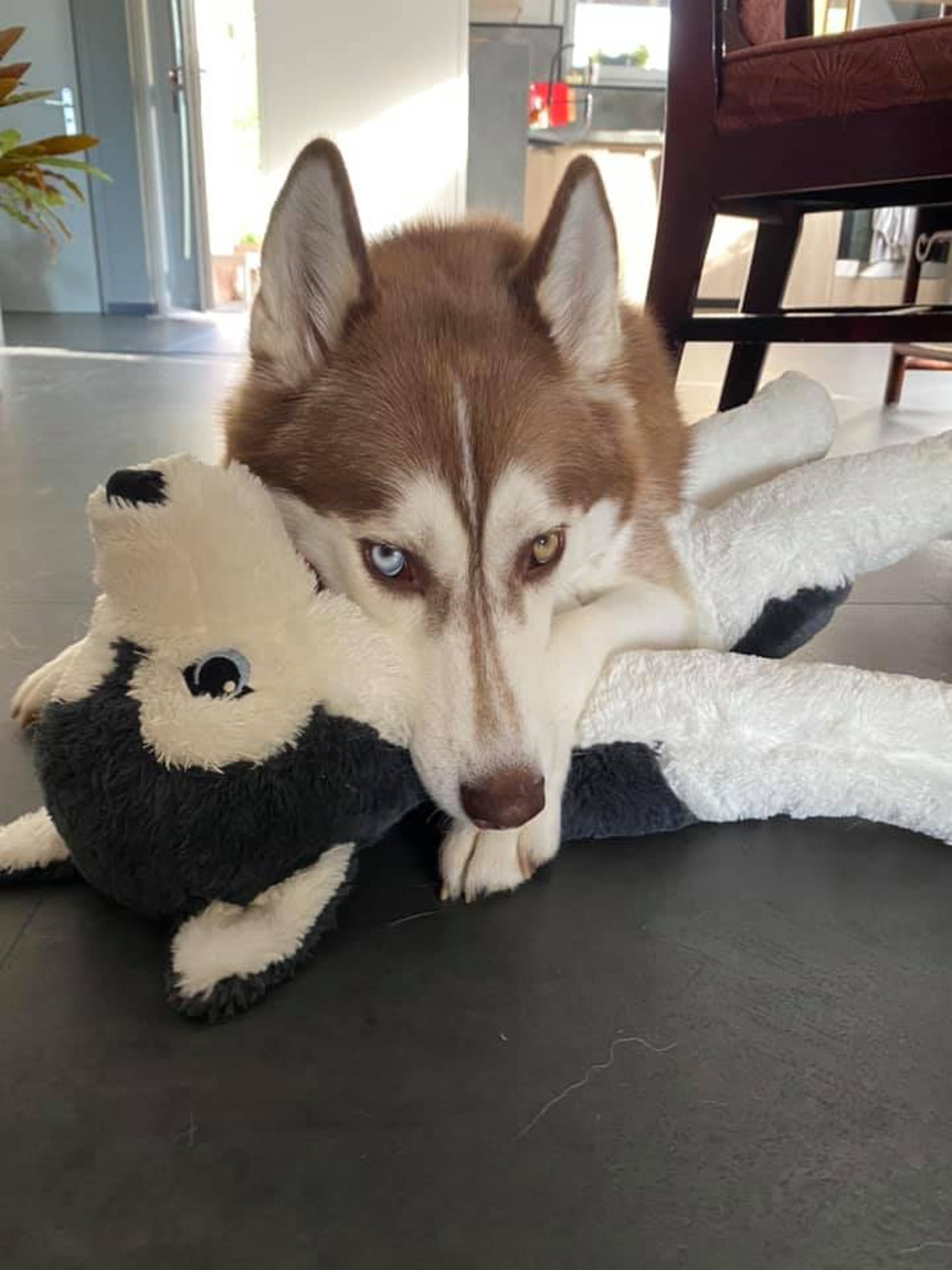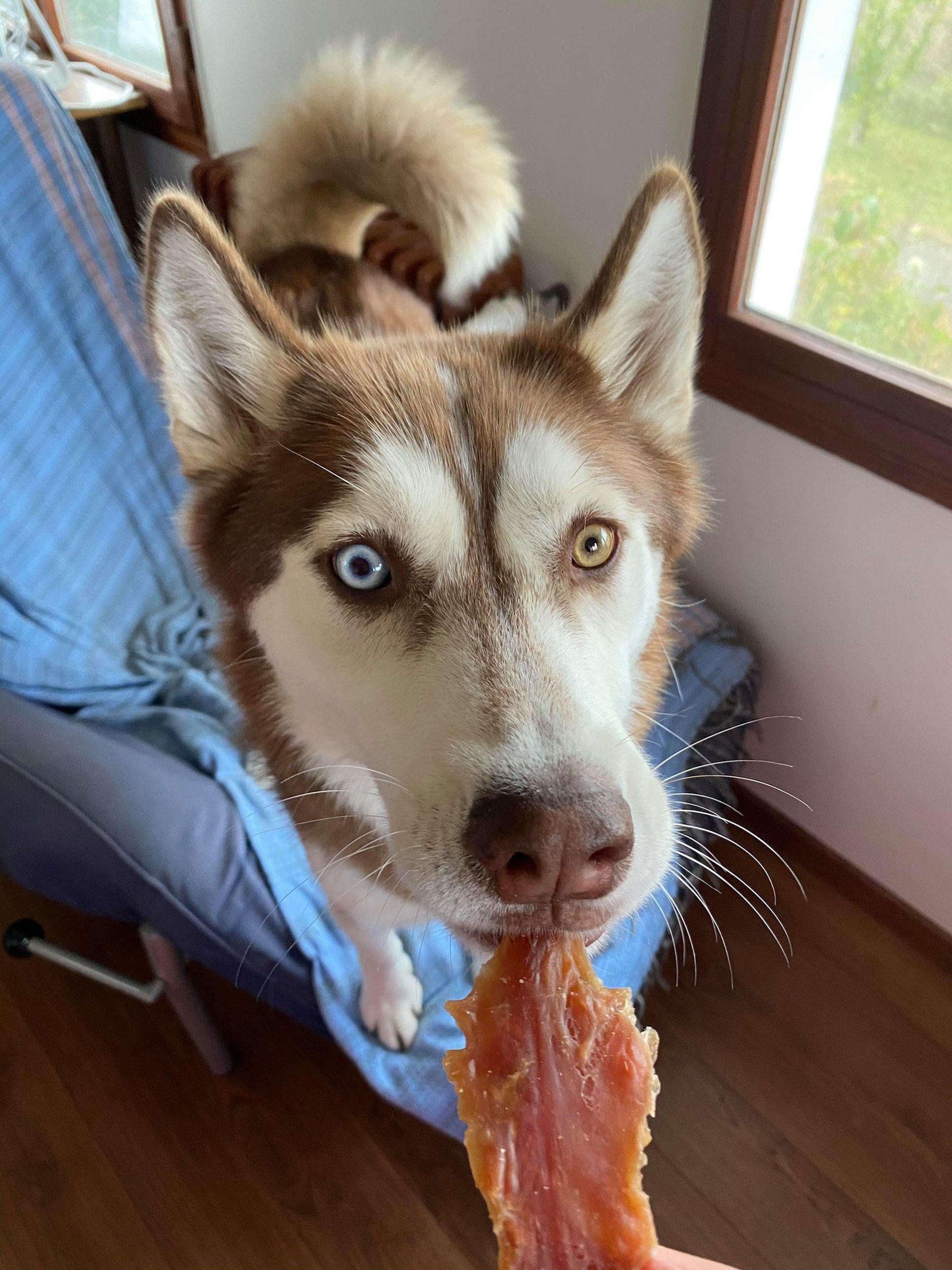 狗主Shirley Hsu,家中養了一隻剛滿3歲的雌性咖啡色雪橇狗「Naïa」。(受訪者提供)