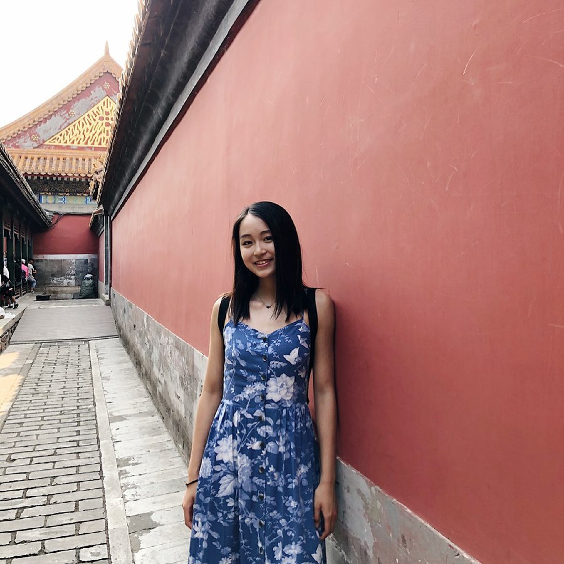 M& j6 m, k* s/ C8 T9 w溜冰場外的朱易,少女味濃。(Instagram@beverly.zhu)